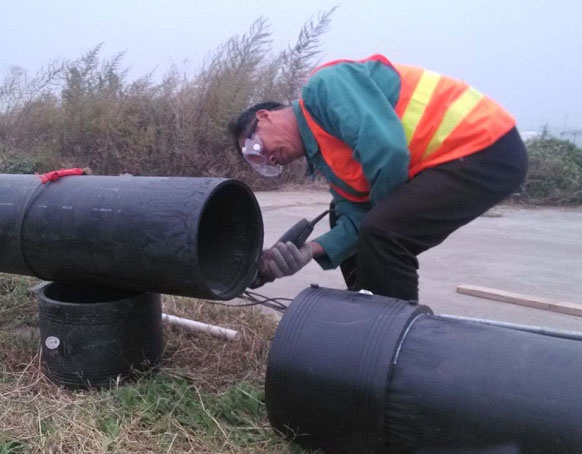 安裝工藝流程:備料—刮削氧化層—清潔焊接面—標記承插深度—檢測管件線圈—轉配管件—檢查配合—固定連接處—管件編號—焊接—冷卻—局部回填—試壓驗收—整體回填